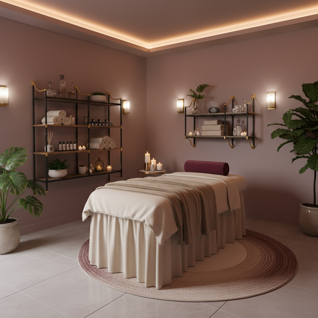 The Transformation: Settle into our plush, heavy linens. You will undress to your own level of comfort, and we ensure you are securely and respectfully draped at all times.